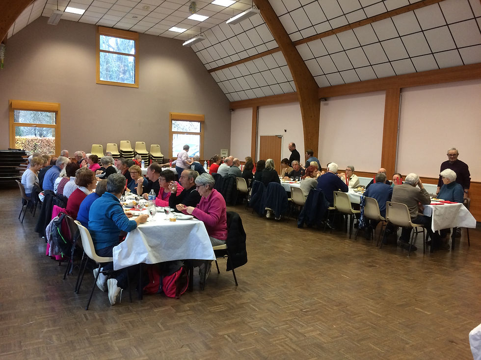Au cours du trajet, croissant et boissons chaudes ont été offerts aux marcheurs (servis par Françoise Eudier et Elisabeth Terrier). 67 personnes ont pris le repas en commun à la salle de Bois-Himont . Celui-ci était préparé par Georges et Elise Lemercier et offert par Super U de Fauville en Caux.